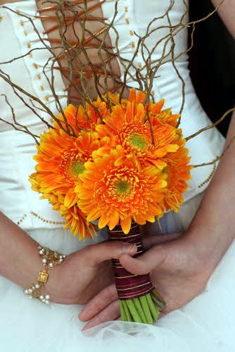The bride's bouquet has some white roses and green cactus flowers for a unique and strange